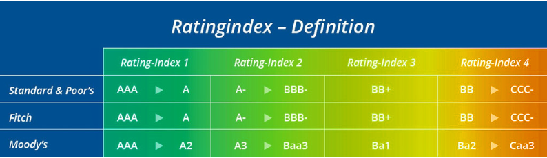 Um Sie bei Ihrer Anlageentscheidung zu unterstützen, kommunizieren wir auf allen Angebotsseiten der verschiedenen Anlagebanken neben den Informationen zur gesetzlichen und eventuell vorhandenen freiwilligen Einlagensicherung auch zusätzlich das Länderrating des jeweiligen Bankenstandortes. Ein Länderrating ist ein Indikator dafür, wie die Solidität eines Staates zu beurteilen ist. Verbraucherschützer empfehlen, bei der Anlageentscheidung neben der gesetzlichen Einlagensicherung auch das Herkunftsland der Bank und dessen Bonitätsnoten bei führenden Ratingagenturen wie Fitch, Moody´s und S&P zu berücksichtigen. Um einen schnellen Überblick zu ermöglichen, bieten wir ergänzend zu der Veröffentlichung des Länderratings auch eine Orientierungshilfe an, um die Vielfalt der verschiedenen Einstufungen einfacher für sich als Anleger bewerten zu können. Eine Einstufung in den Ratingindex 1 oder 2 zeigt auf, dass das Länderrating mindestens "Investment Grade" ist. Banken aus EU-Ländern mit einem Ratingindex von 3 oder 4 werden bei Topzins als Hochzinsangebot gelistet. Weitere Informationen zu unseren Hochzins-Angeboten.